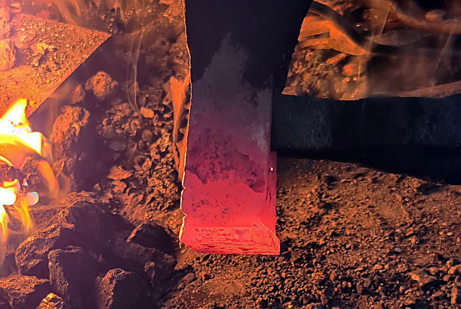 Julien ne voulais pas faire de couteau ! Alors on a fait une hache, c'est toujours bien une hache. Corps en C38, insert au tranchant en C130 et marteau en C45.