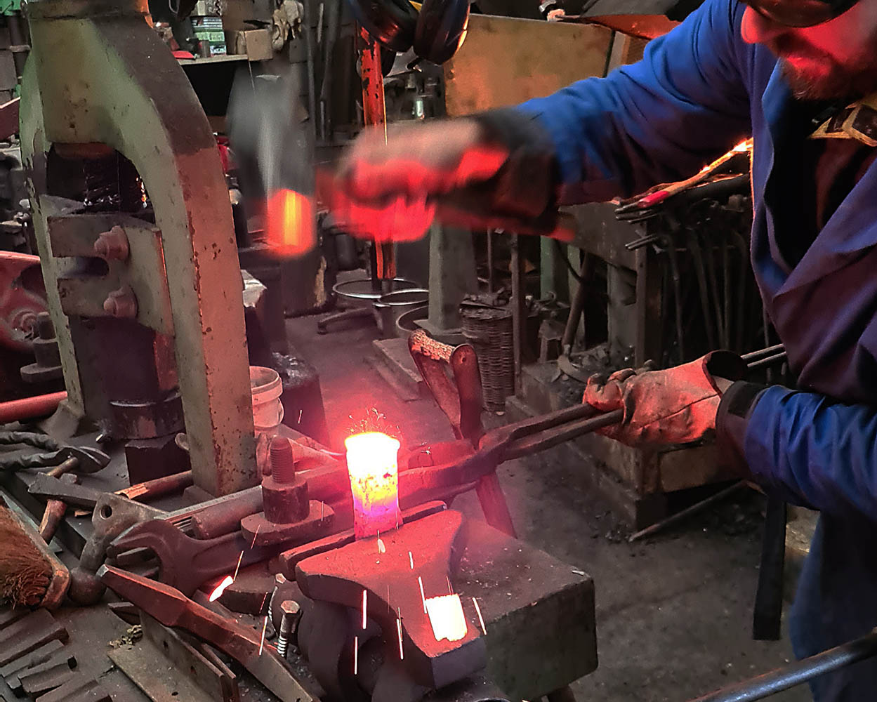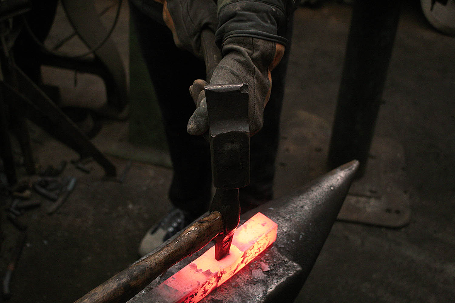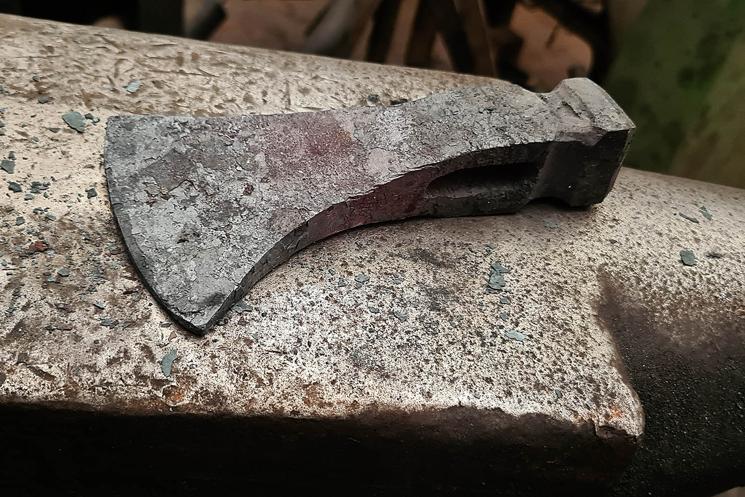 Hache forgée en acier doux avec insert en C130 et C45 soudé au feu à l'arriere pour un marteau sacrément efficace. Ca c'est job !