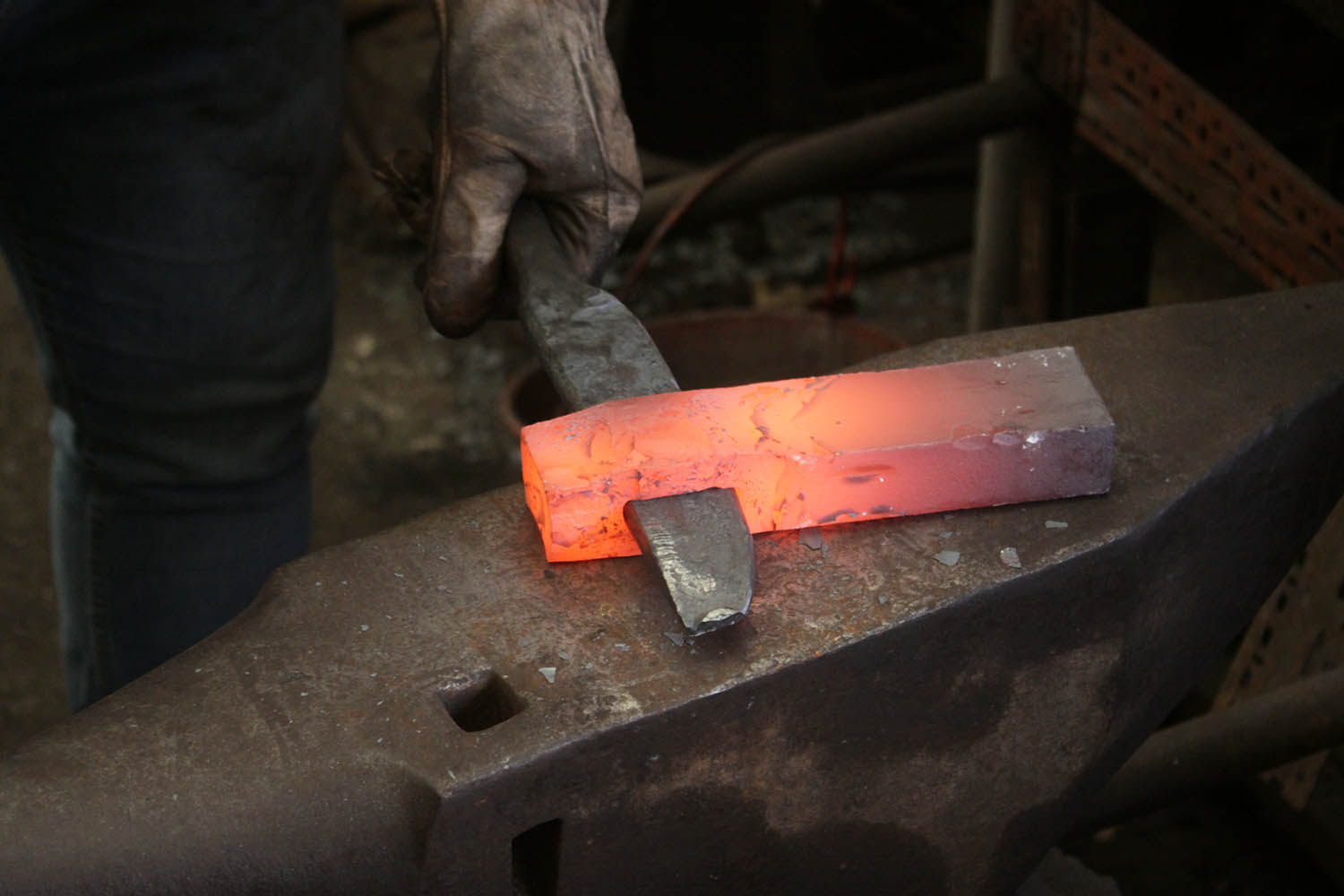 2eme passage à l'atelier pour Paul. Ce coup ci, c'est pour réaliser une belle hache forgée avec insert central soudé à la forge en xc100.