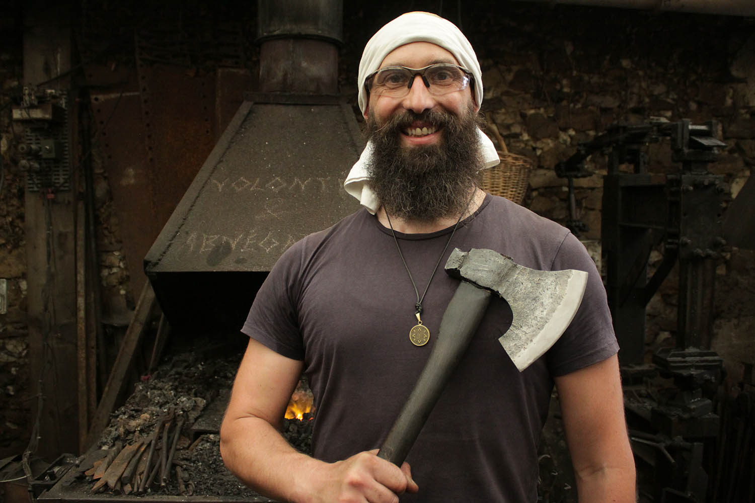 Costaud et courageux, notre breakdancer est venu casser les enclumes pour réaliser cette enorme hache forgée avec tranchant inséré. Du serieux et du bien vénère !!!