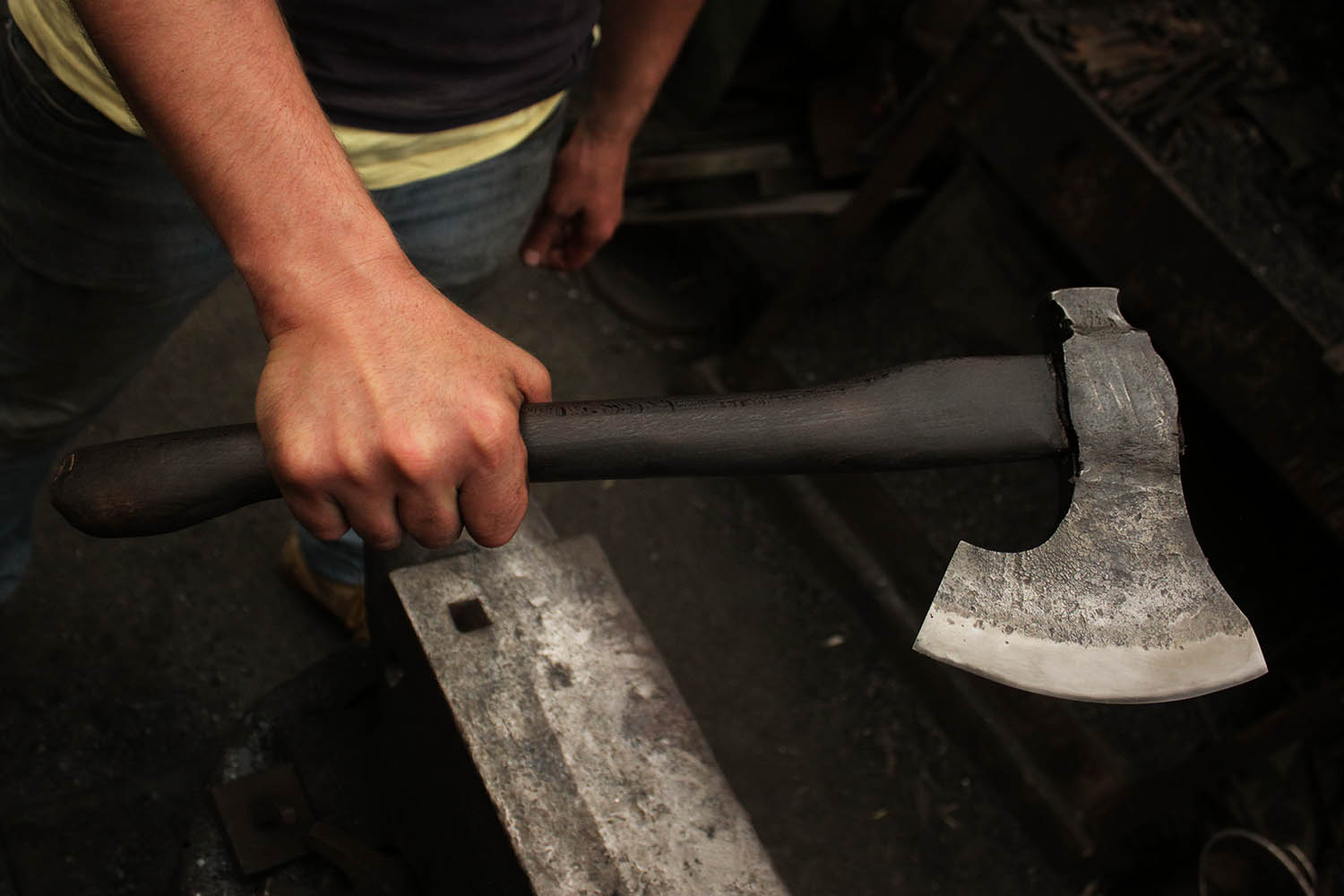 Enorme hache pour ce valeureux forgeron en devenir. Corpe de hache en fer doux et âme insérée en acier extra dur. Maîtrise et tradition au son du marteau.