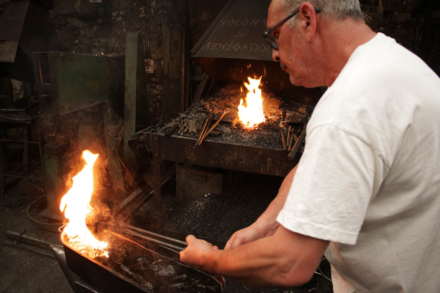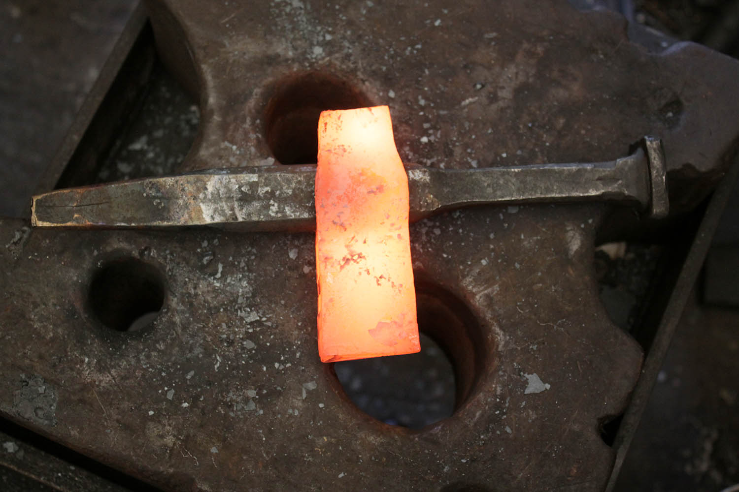 Motivé pour se faire une hache, Olivier est venue en stage de forge pour réaliser cette magnifique trancheuse forgée.