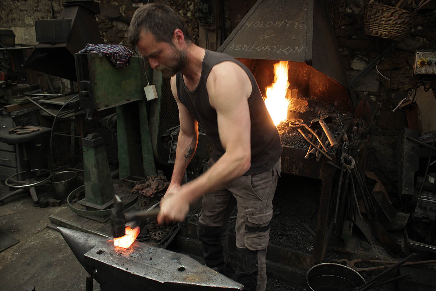 Charpentier et passionné, Pierre est passé pour réaliser cette superbe hache forgée. Un beau défi et un sacré travail.