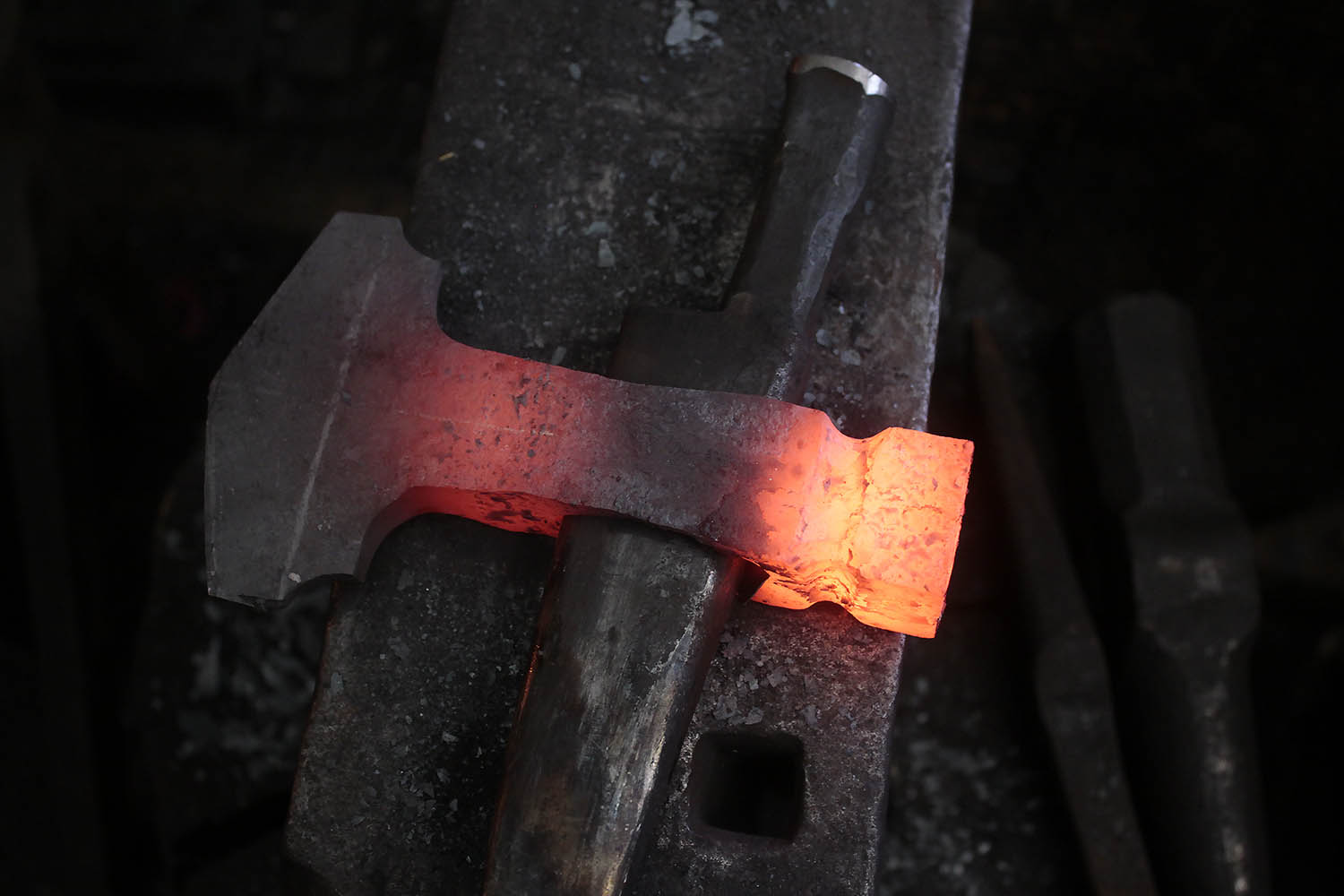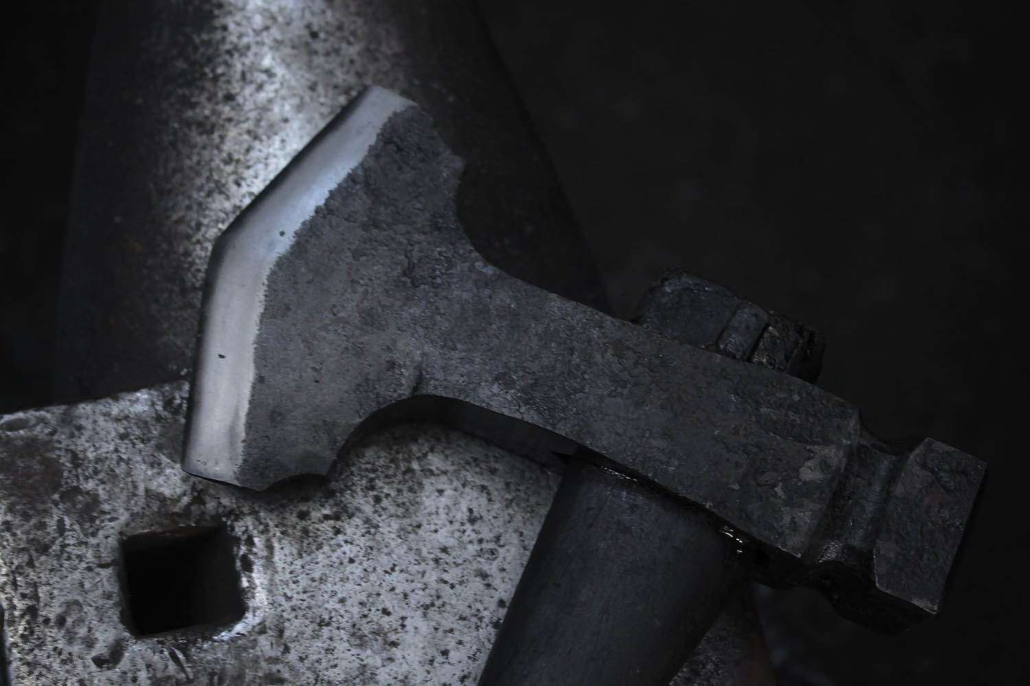Denis a fait son premier stage de forge sur cette hache d'inspiration très "naine" style LoTR.