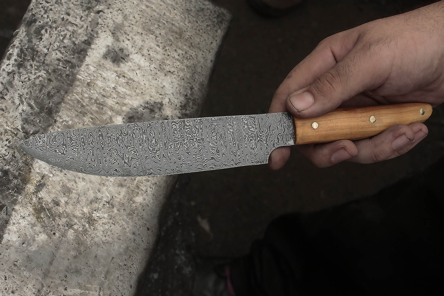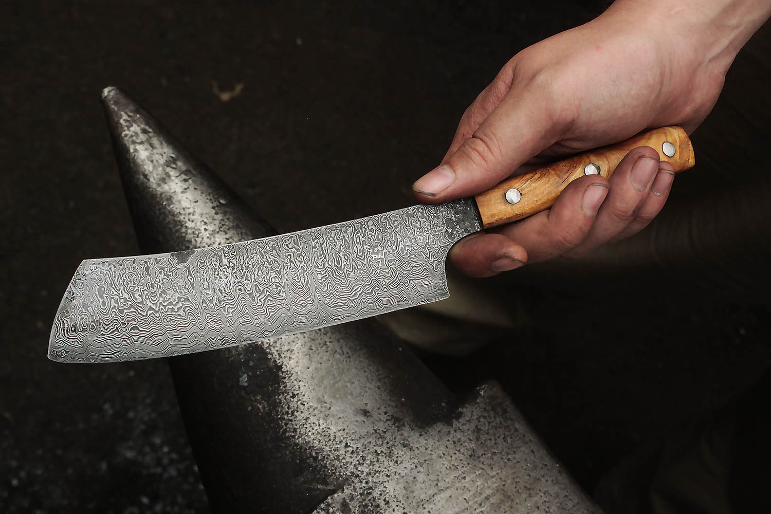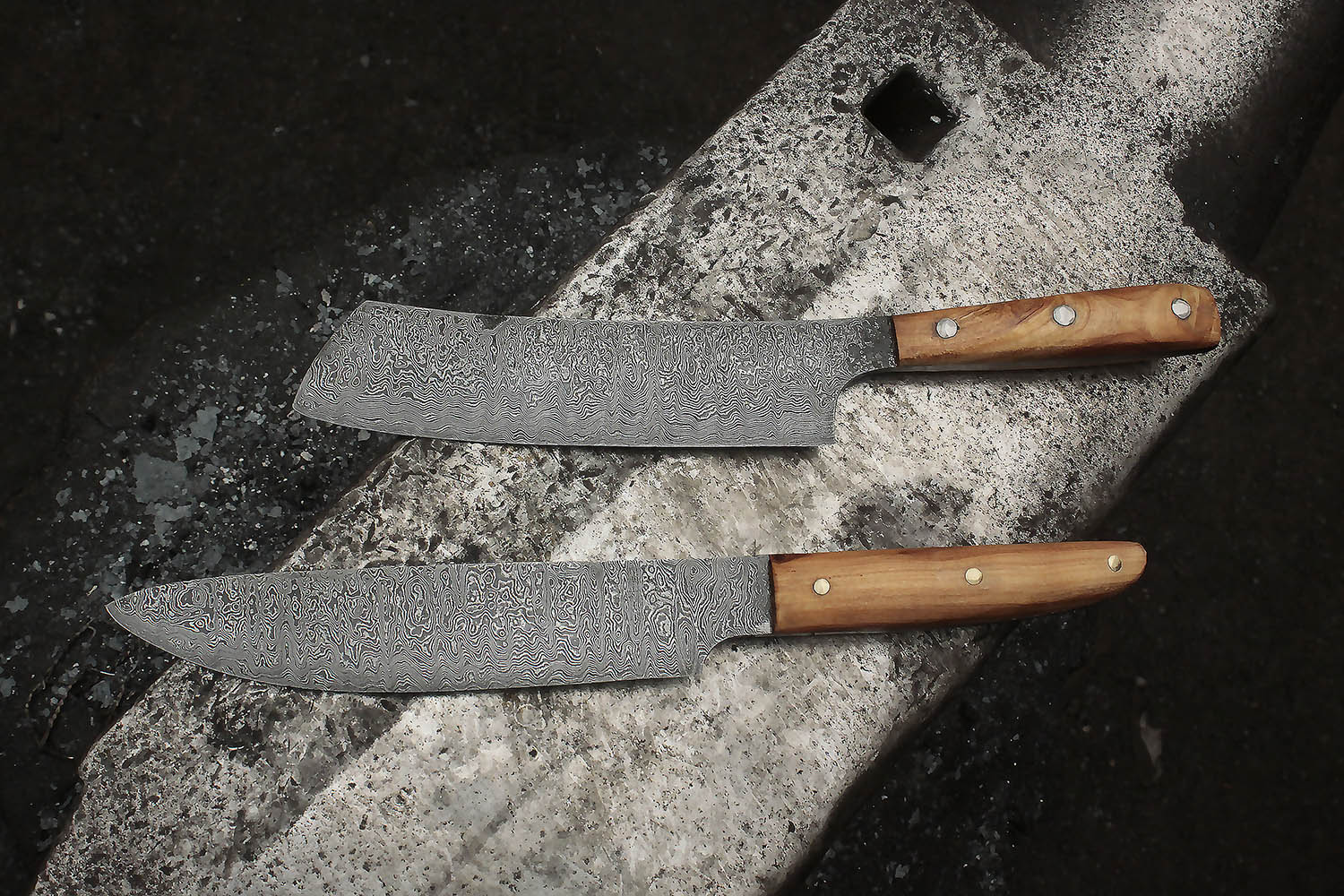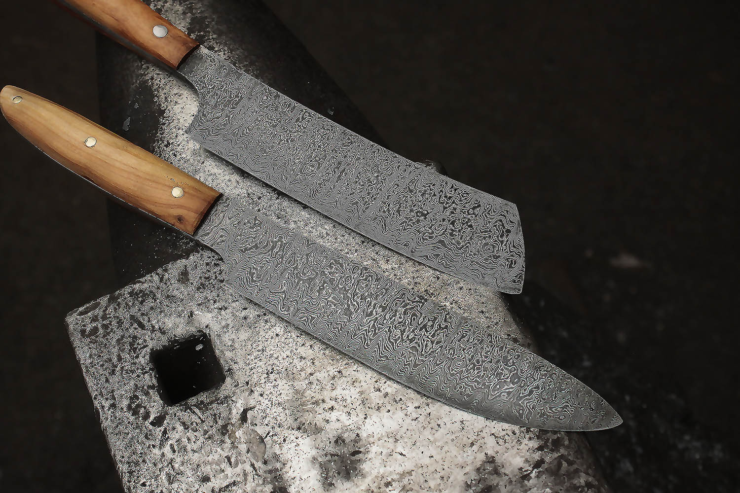 Ces 2 compères sont déjà passés 3x à la forge. Ce coup ci, ils ont œuvré 4 jours pour forger ces 2 magnifiques couteaux en damas avec manche en pommier. Un sacré boulot. Bien joué les gars, vous avez assuré.