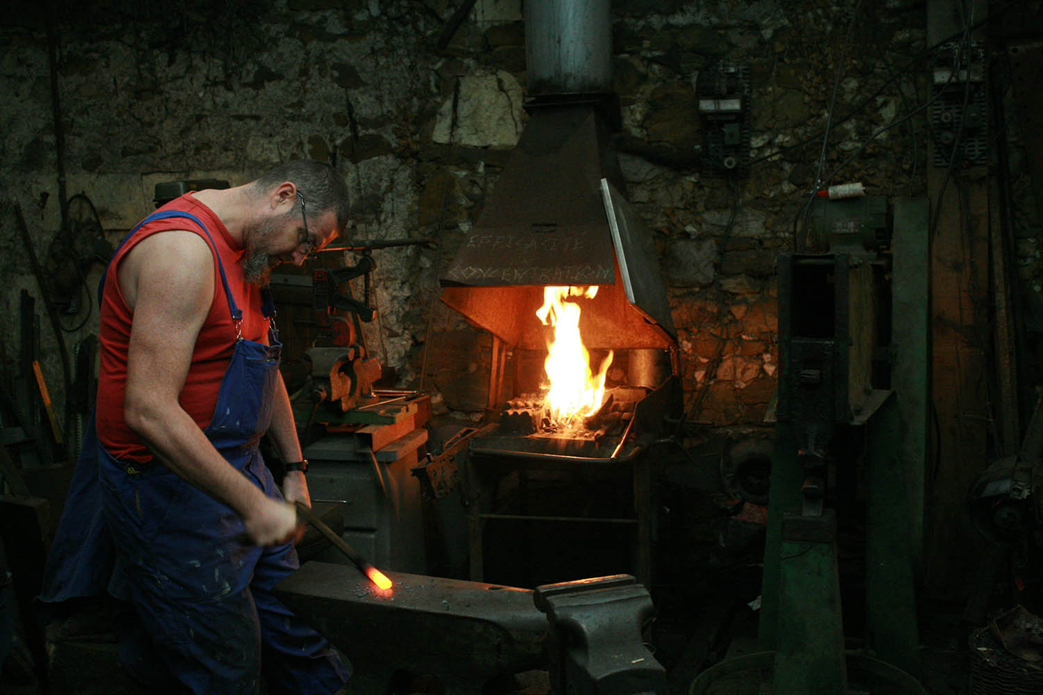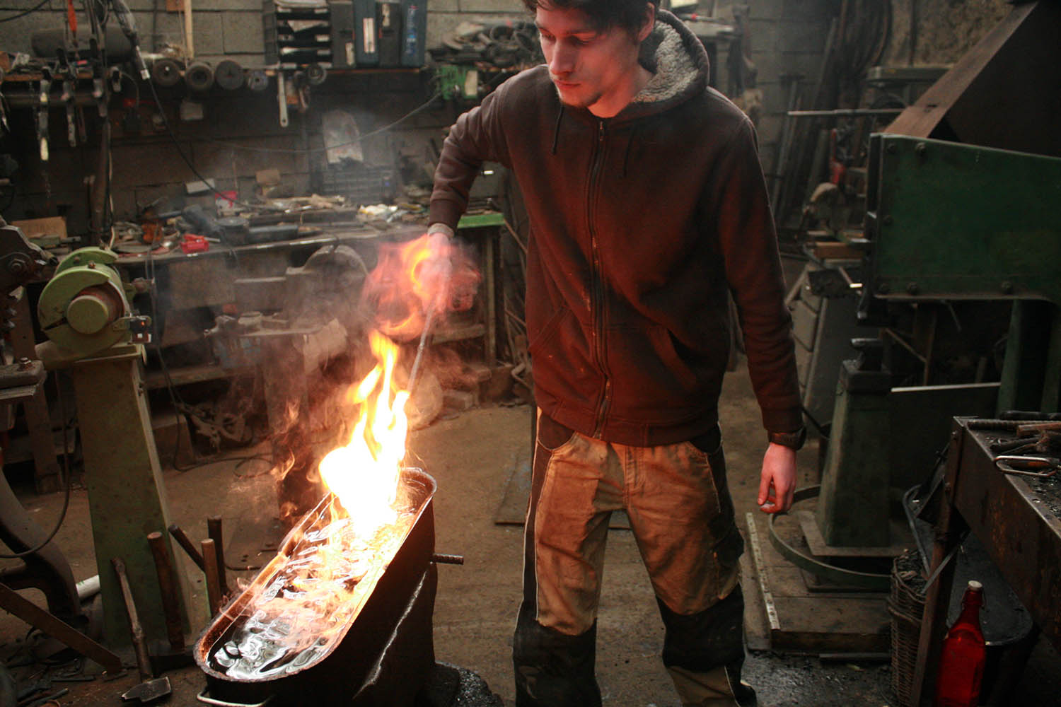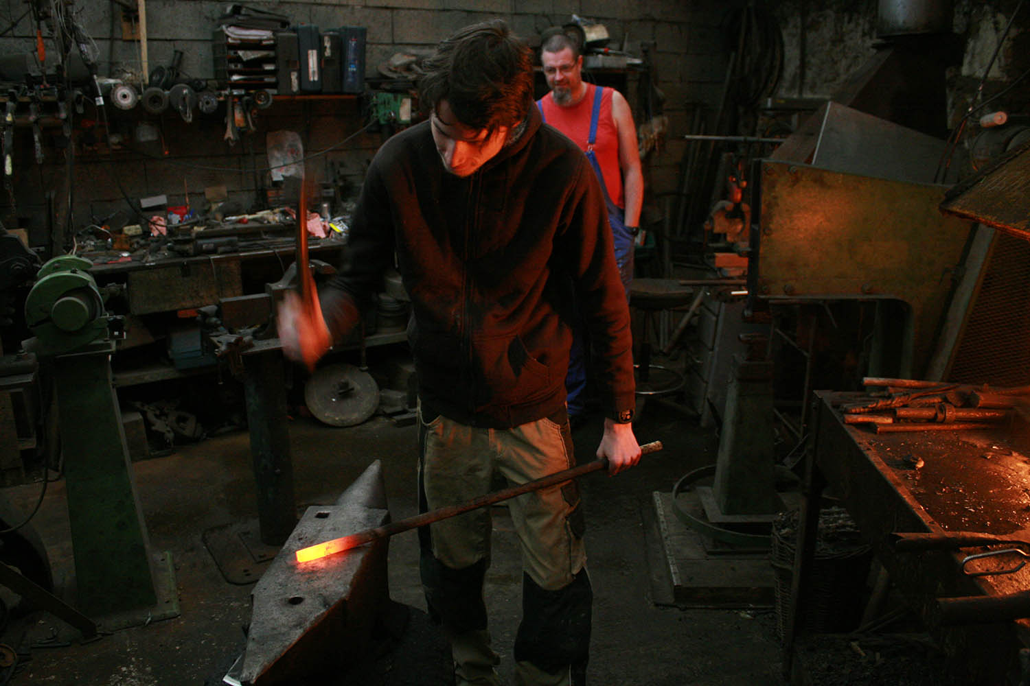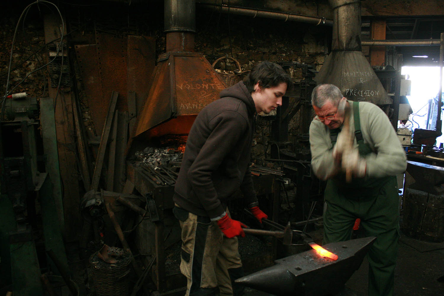 Une famille, voila qui est funky à la forge. Et la c'est tout un clan ! Grand-père, fils, et 2 petits-fils. Un sacré moment de rigolade et de travail. Intense et parfait, avec un soupçon de poire.