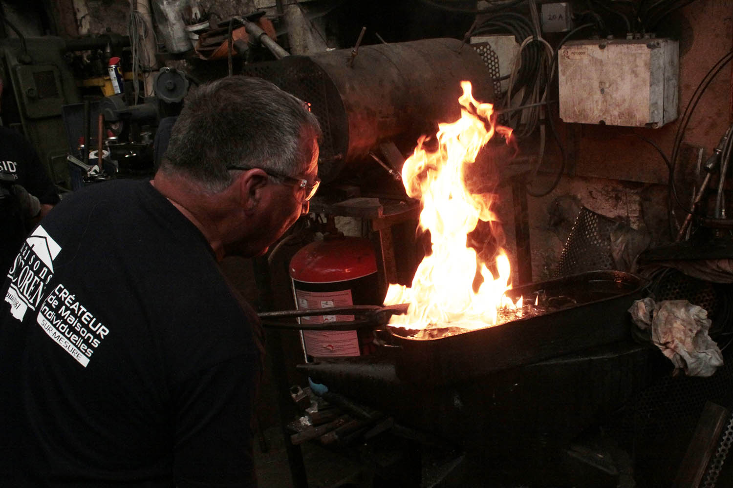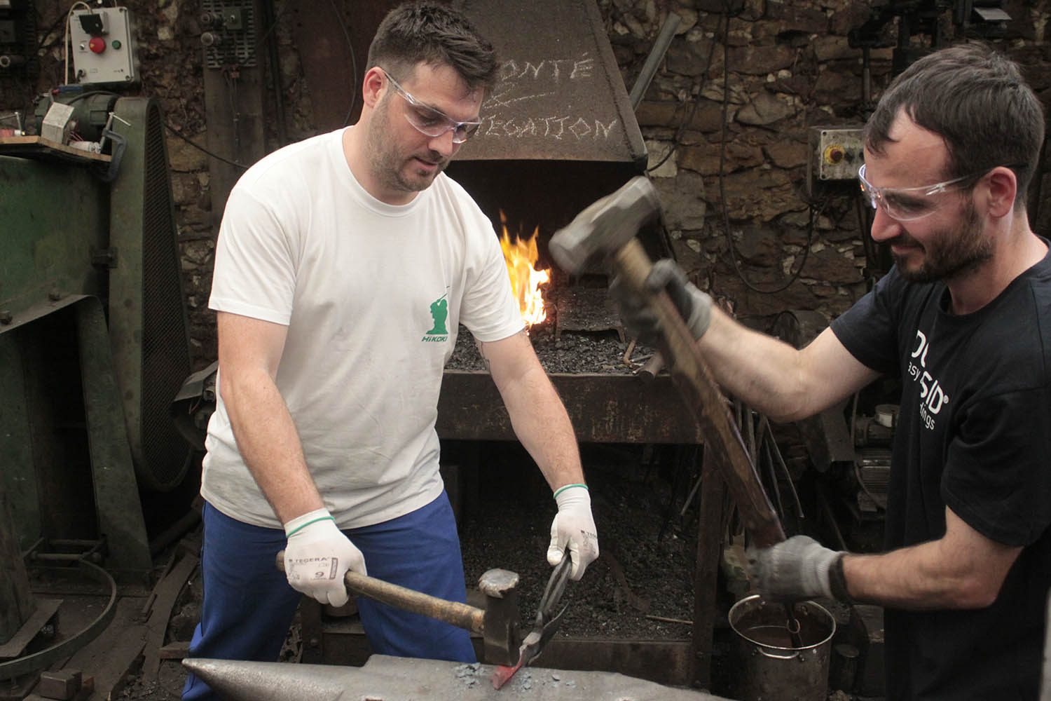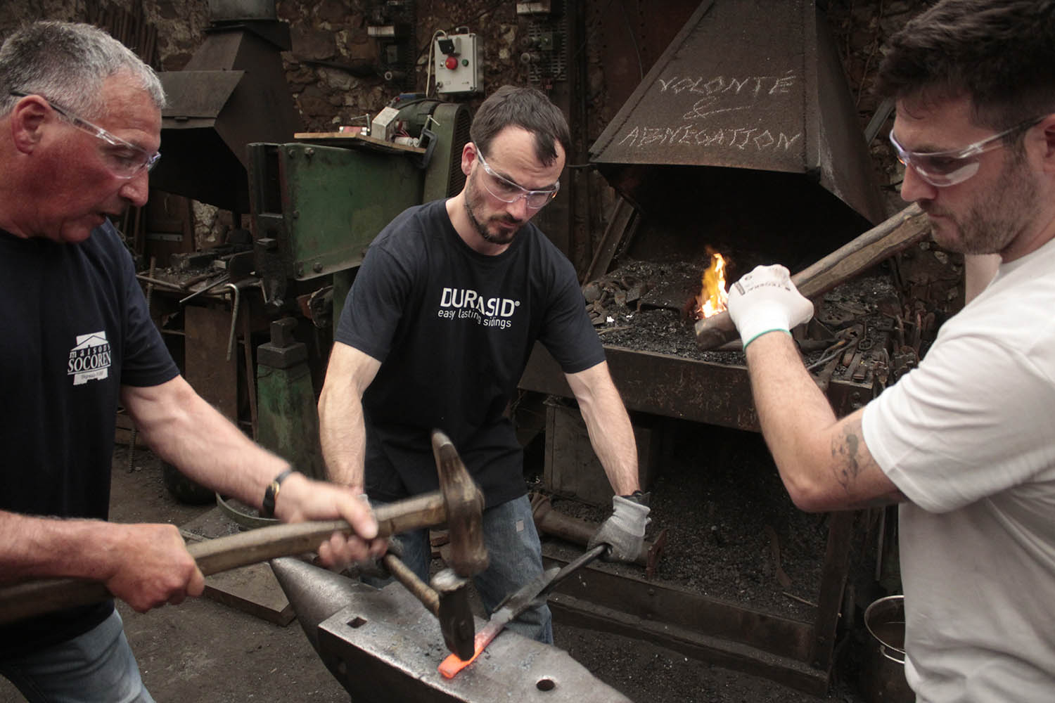 Toute une famille en stage de forge, pour 3 couteauxw forés tres differents c'est une experience unique.